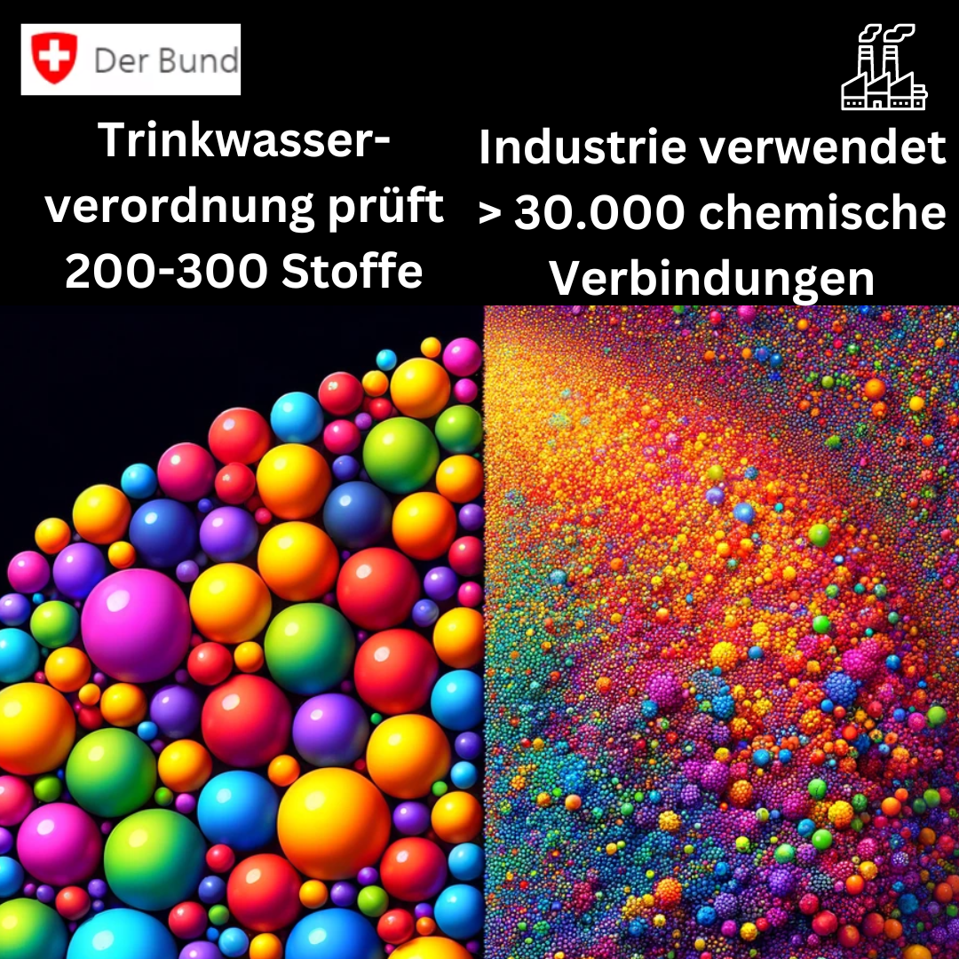 Die Trinkwasserverordnung regelt die Grenzwerte für wenige hundert Stoffe - in der Industrie werden aber mehr als 30.000 chemische Verbindungen eingesetzt, die gar nicht alle überwacht werden können.
