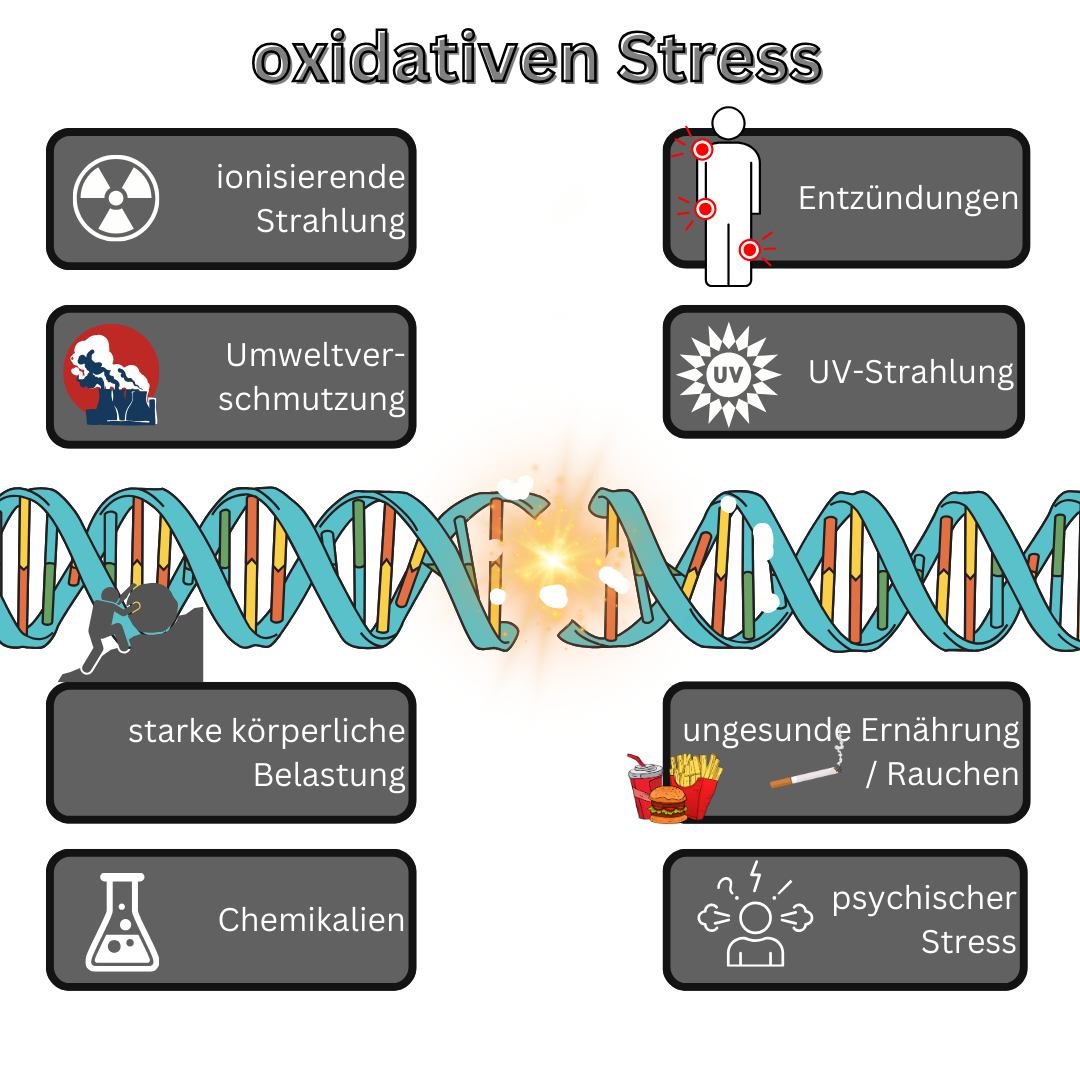 Avant d'approfondir la signification de la valeur rédox, nous aimerions examiner de plus près le stress oxydatif, car celui-ci peut être directement influencé par la valeur rédox de notre eau potable et constitue un facteur d'influence clé pour notre bien-être.